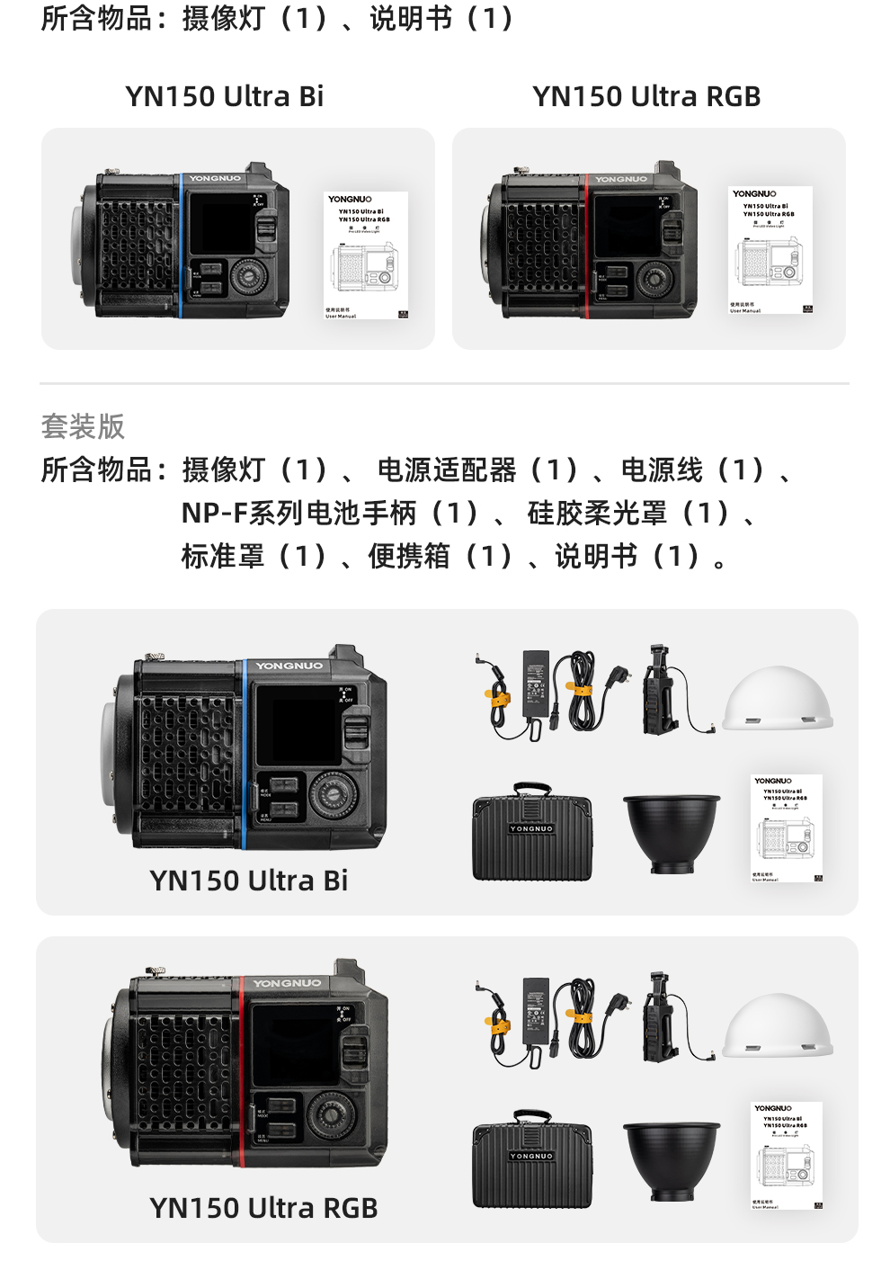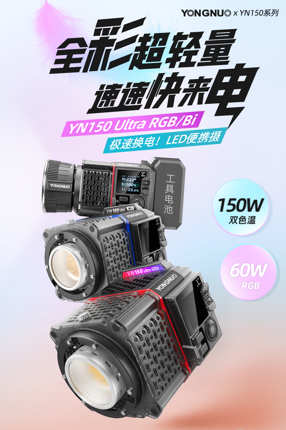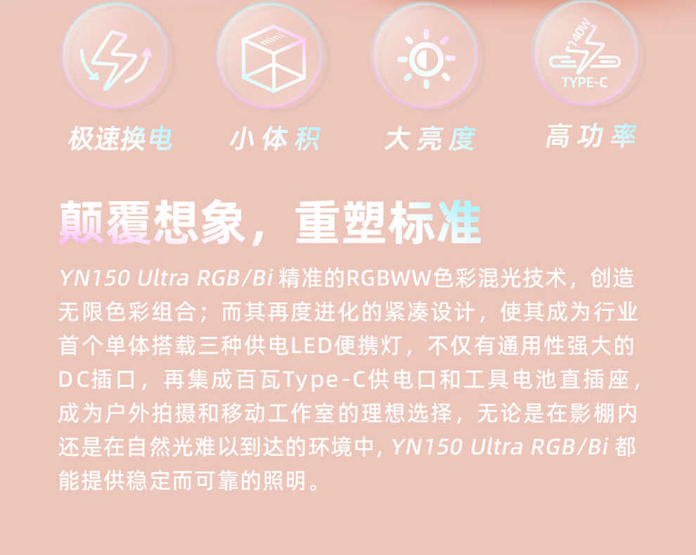 YN150 Ultra RGB/Bi LED便携摄像灯