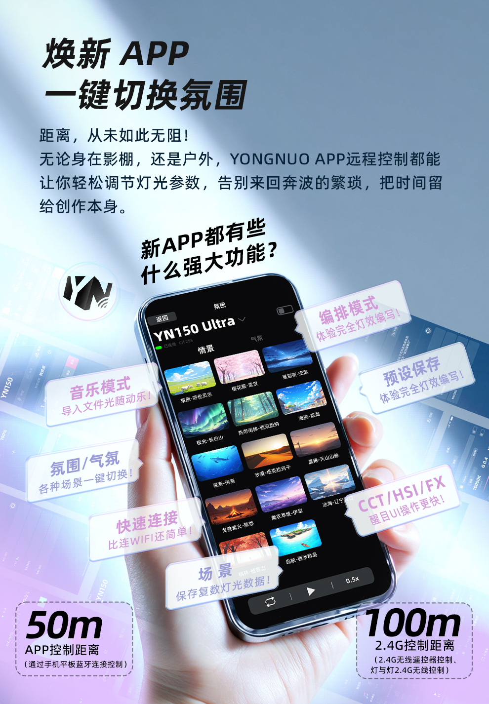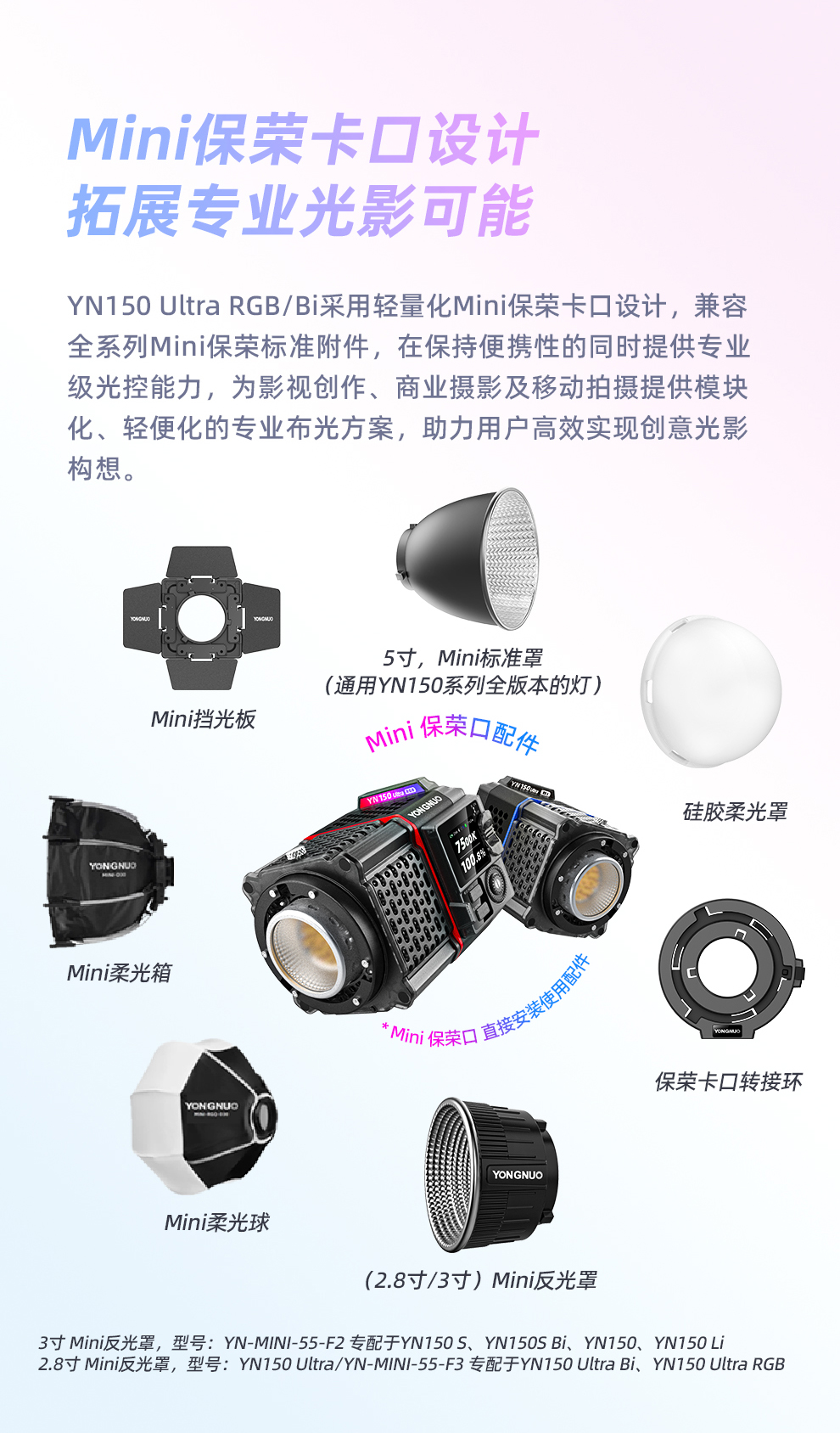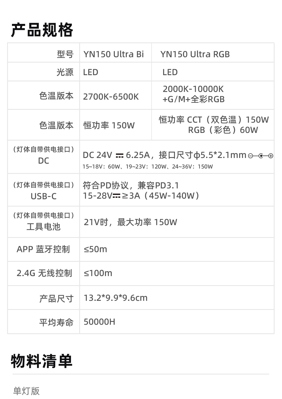 YN150 Ultra RGB/Bi LED便携摄像灯